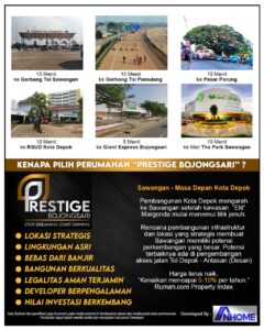 Perumahan Prestige Bojongsari Depok namanya. Perumahan Prestige Bojongsari Depok berada di Jl.Manggis Bojongsari Lama, Kecamatan Sawangan. Perumahan ini mengusung desain bangunan modern minimalis dengan penataan ruang yang baik sehingga penghuninya akan merasa nyaman dan lega. Prestige Bojongsari mempunyai tingkat privasi serta keamanan yang lebih terjamin dengan One Gate System dan Security 24 Jam.